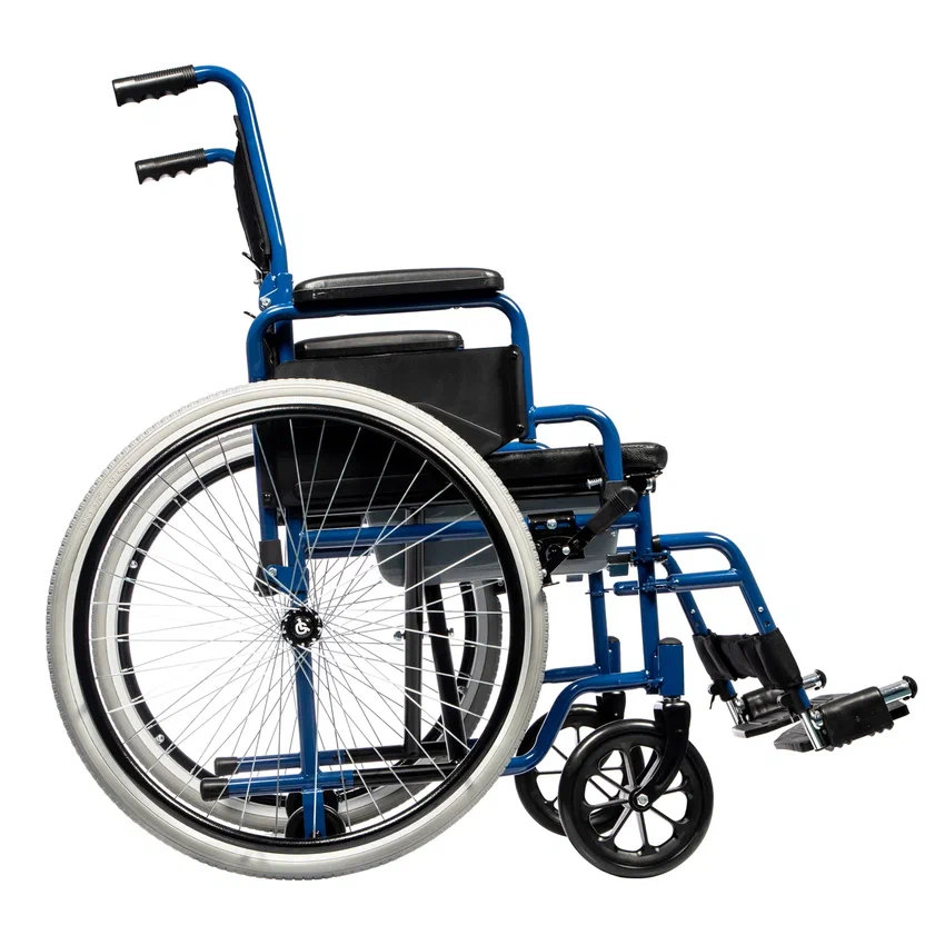 Складная конструкция и быстросъемные задние колеса удобны в поездках и при хранении кресла-стула.