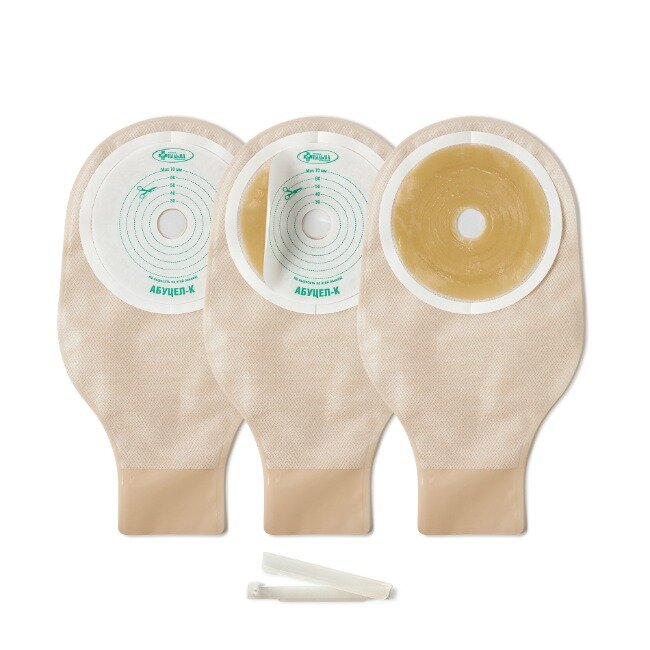 Прозрачный калоприемник с двойной системой крепления и пластиковым зажимом. Полностью изолирует запах и жидкость, герметичен (благодаря герметизирующему кольцу). Крепится к телу пациента с помощью липкого фланца. Незаметен под одеждой, не шуршит. Пластиковый зажим позволяет очищать и промывать калоприемник, не снимая его со стомы.