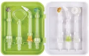 В комплект поставки входят две насадки. Зарядка прибора происходит при помощи бесконтактного индукционного зарядного устройства. Резервуар ирригатора рассчитан на 40 секунд работы, что достаточно для проведения одной процедуры и нет необходимости в освобождении резервуара после каждого применения.