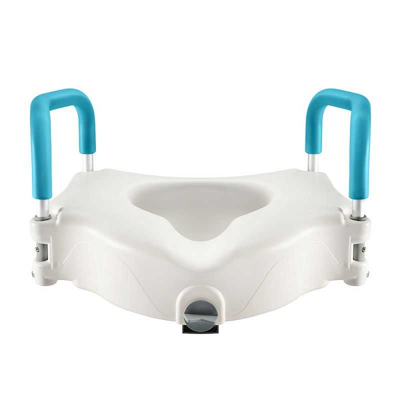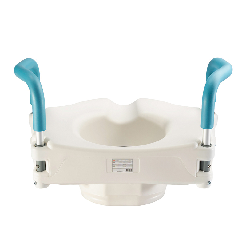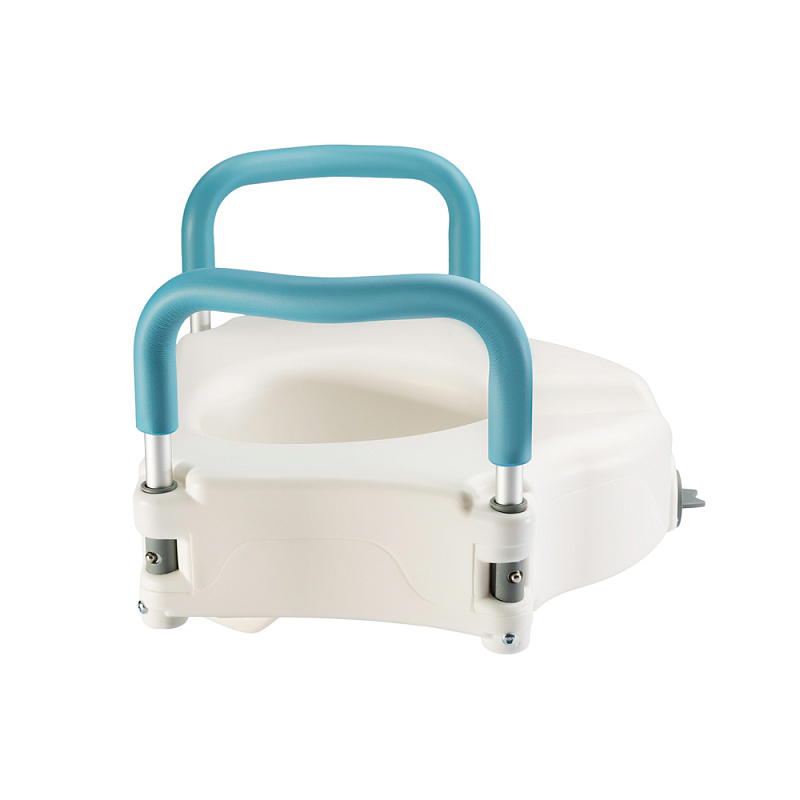 - Пластиковая насадка на унитаз со съемными поручнями увеличивает высоту унитаза