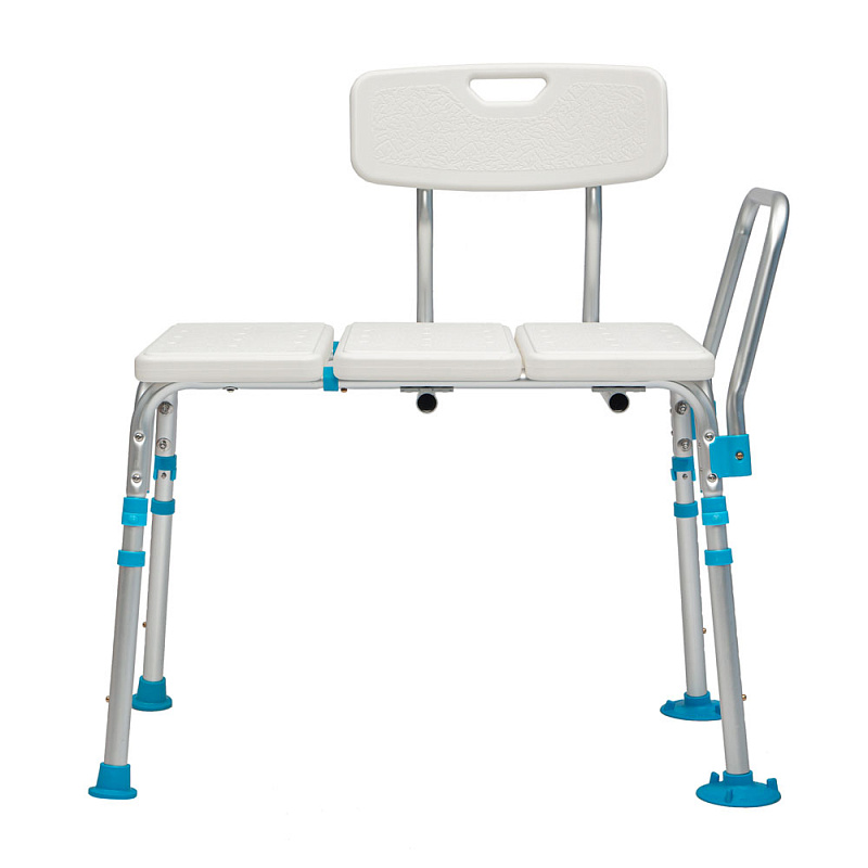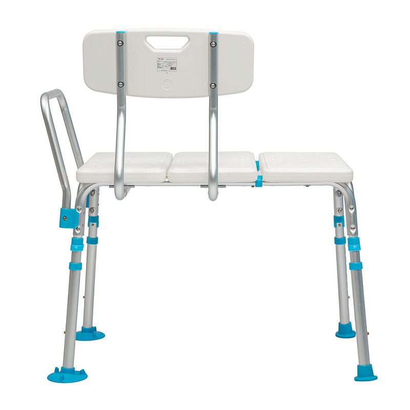 Стул оснащен быстросъемным подлокотником для дополнительной опоры, а также переставной спинкой, которую можно установить в зависимости от расположения ванны или душевой кабины.