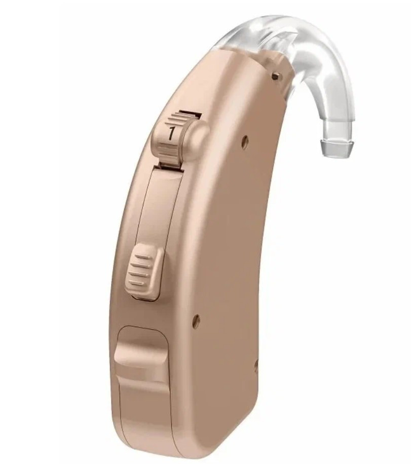Заушный аналоговый слуховой аппарат для средних и тяжелых потерь слуха.