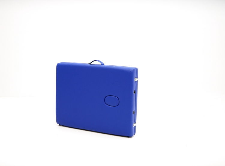 Стол, обладающий элегантным и лаконичным дизайном, выпоненный в синем цвете, складывается в чемодан для удобной транспортировки. Оборудован поднимающимся подголовником, снабженным лицевым вырезом, продублированным в изголовье, и подвесом для рук. Покрытие ложа с пенополиуретановым наполнением выполнено из винилискожи.