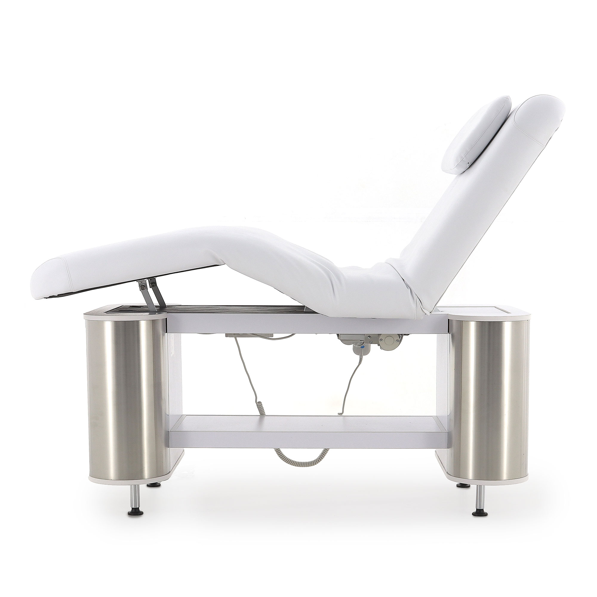 Стол имеет три секции, которые можно регулировать по углу наклона и положению. Это позволит подобрать наиболее комфортную позу для конкретной процедуры. Регулировка высоты стола – электрическая. Максимально возможная нагрузка на конструкцию составляет 180 килограмм.