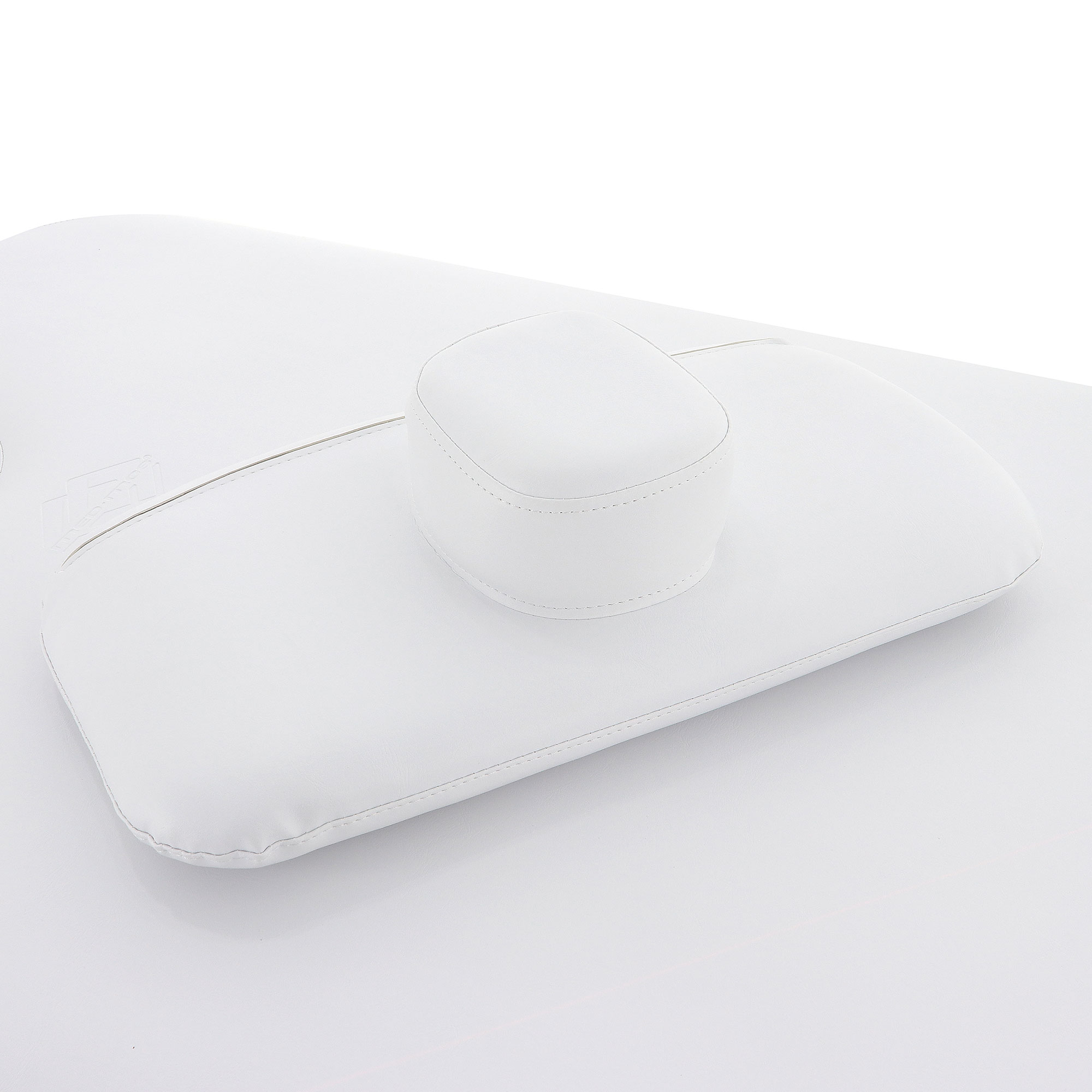 Каркас стола выполнен из стального сплава. Этот материал не подвержен коррозии, не портится от попадания влаги, не деформируется. В качестве наполнителя используется поролон толщиной 120 мм. Он не проминается, хорошо сохраняет свою форму и оказывает должную поддержку. Обивкой служит винил-люкс. Этот материал отличается высоким качеством. Он не протирается и не трескается, не портится от попадания влаги и косметических средств. Кроме того, он приятен на ощупь, не вызывает тактильного дискомфорта или аллергии. В комплекте подголовник для большего удобства клиента.