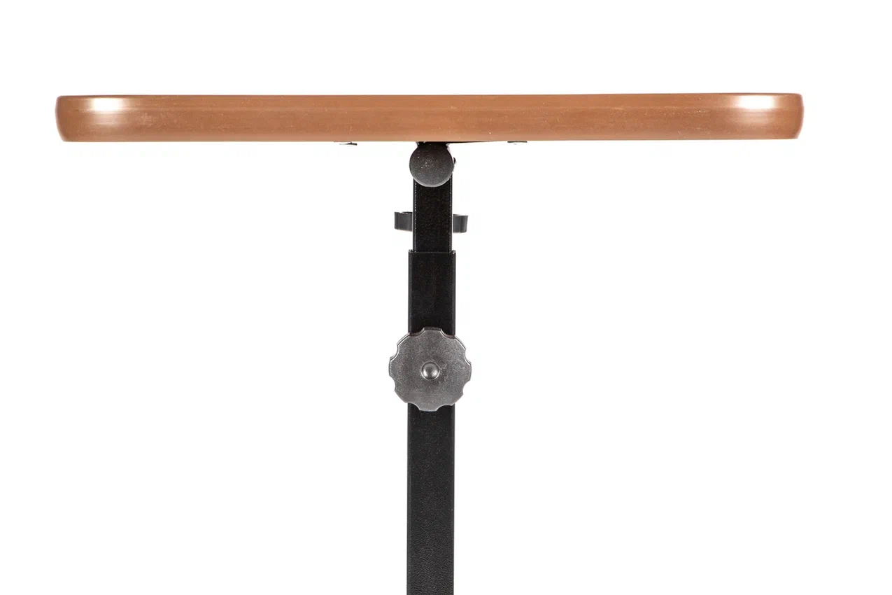 - Прикроватный столик изготовлен из стали и снабжен двойной столешницей (фиксированная и регулируемая по углу наклона) из ЛДСП